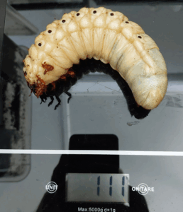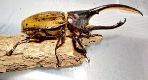 De afgelopen paar jaar ben ik me meer en meer gaan focussen op Dynastes hercules. Een tiental jaren geleden heb ik daar best wat moeite mee gehad, maar nu lukt het eindelijk! Zo is het me gelukt om een mannetje van 14 cm te kweken (zie foto links) en momenteel heb ik een mannelijke larve van 111 gram (de beide andere foto’s). Wat een tevreden gevoel is dat om zo’n joekel in m’n hand te houden. Voorheen werden de larven van 100 – 105 gram zo’n 13 tot 14 cm, dus ik ben benieuwd hoe groot deze van 111 gram wordt. Bovendien is hij er nog niet aan toe om te verpoppen, dus wie weet hoeveel hij nog gaat aankomen voordat hij de pop in gaat.